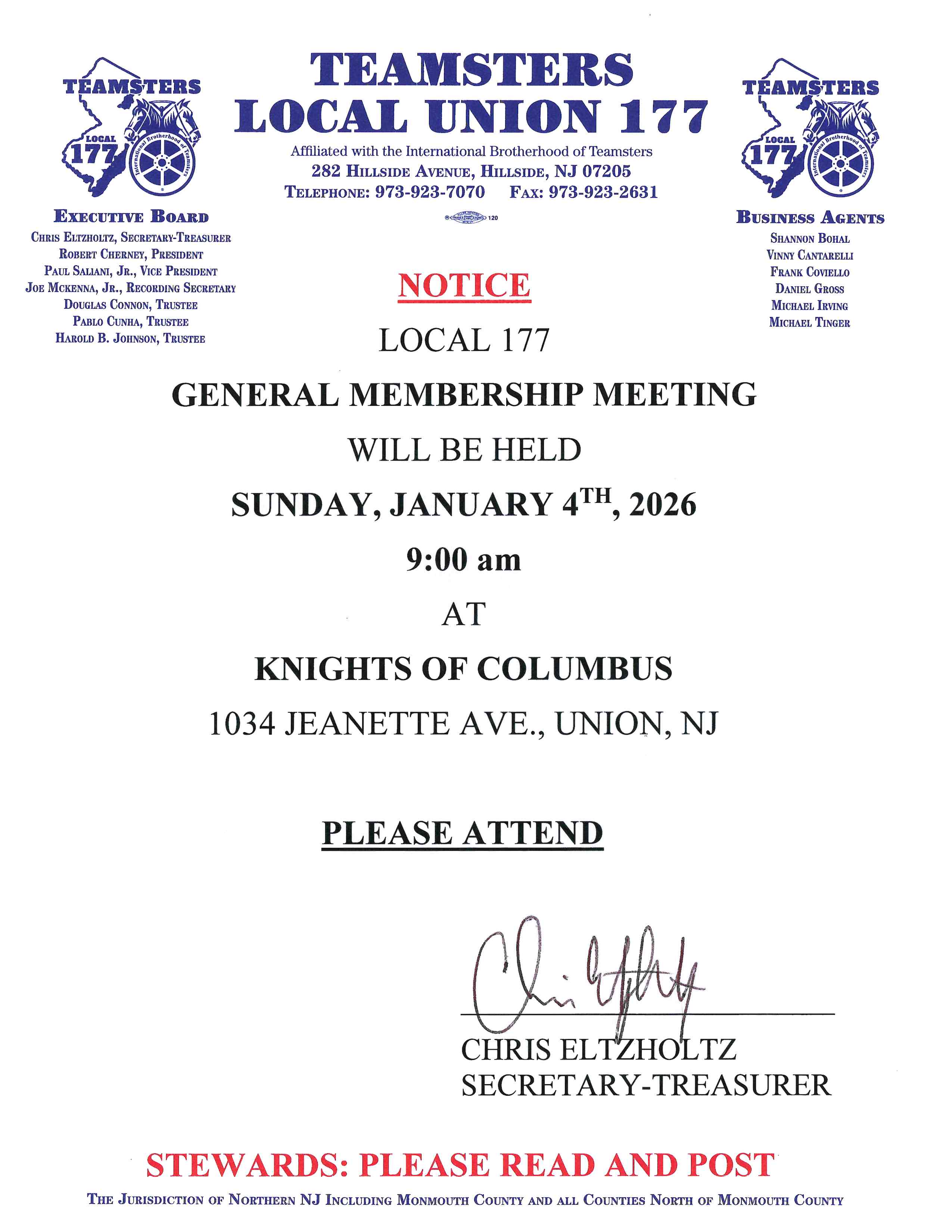 Local 177 has been fighting for working-class families under the parent organization known as the International Brotherhood of Teamsters, founded in 1903. We stand up for our members in the legislative, political, and social landscapes.
